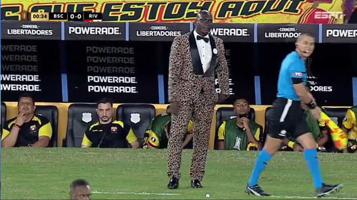 No duelo pela fase de grupos contra o River Plate, no dia 8 de maio, em Guayaquil, o treinador foi a campo usando um smoking com estampa de leopardo e um broche com o logotipo de uma loteria nacional do Equador.